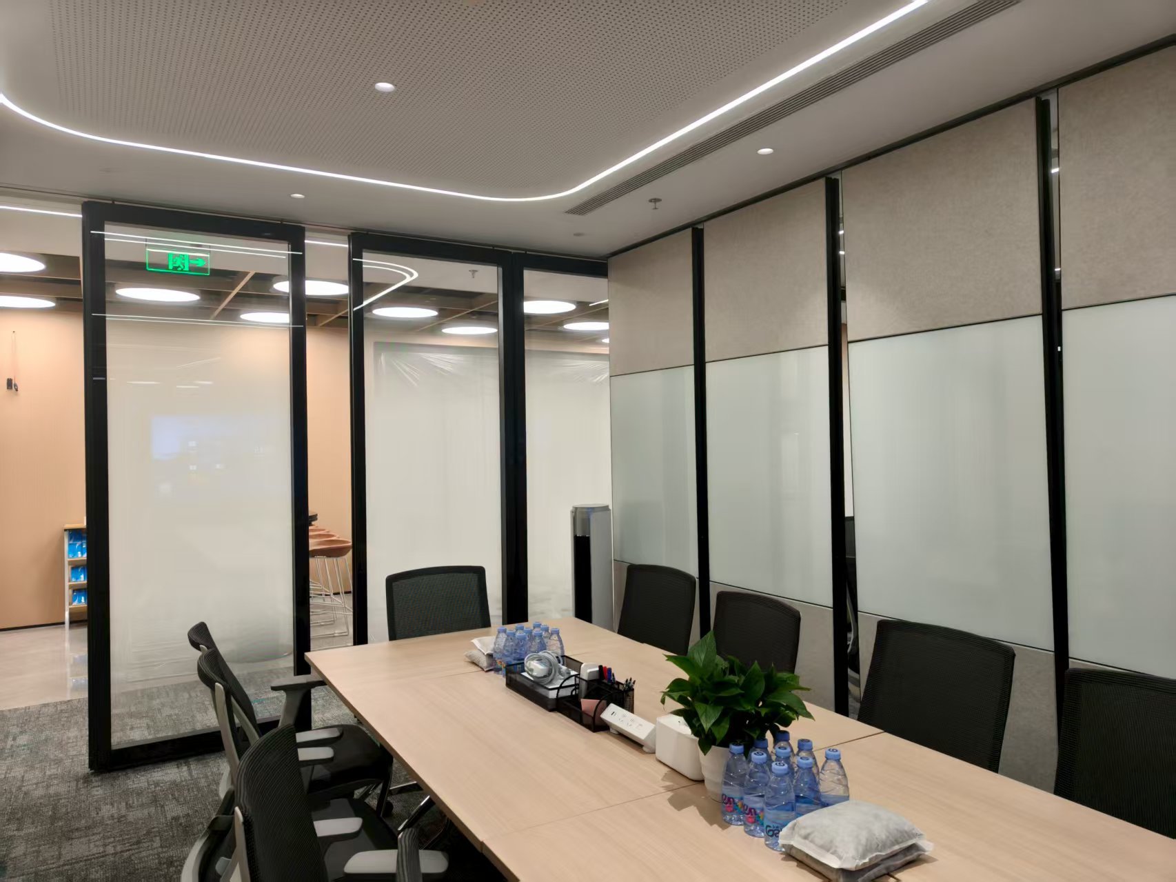The track system of this Foldable Room Separator is made of aluminum and features rollers for smooth and effortless operation. The aluminum track is durable and lightweight, ensuring long-lasting performance and easy maintenance. The rollers allow the partition wall to glide along the track with minimal effort, making it convenient to adjust the layout of a space.